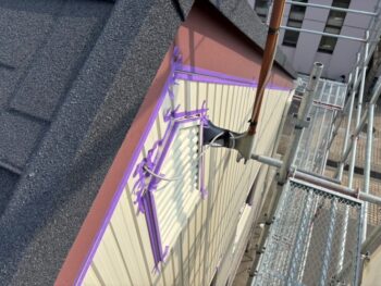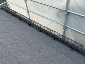 屋根にゴムアスルーフィングを貼り、軒先板金を施工します
