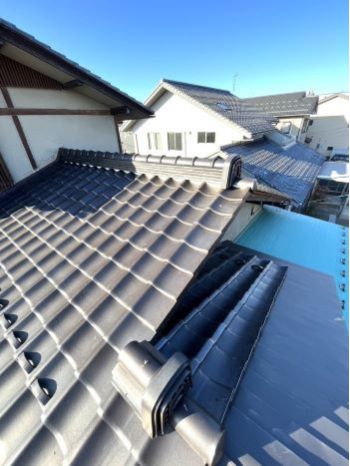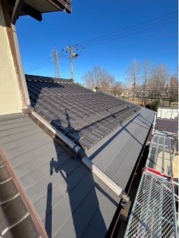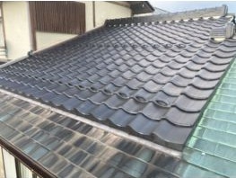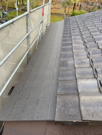 以前父が正面を直した際は銅板に合わせて銅板系の色で葺いてありましたが、特に拘りがないので西盛さんと相談して無難な黒色にしました。