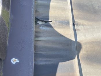 屋根を見てみると銅板に穴が開いており雨漏りしていました。