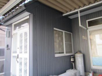 値段を押さえたいとの事でしたが、塗装は安価ですが、劣化した外壁に塗装しても剥がれやすくなります。今後のメンテナンスのことを考えて、板金をお勧めしました。