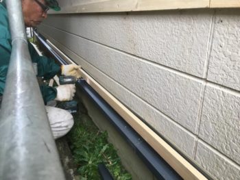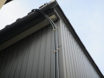 鼻隠しや雨樋も汚れが目立っていたので、電線も一緒に壁の色に合わせて塗装しました。