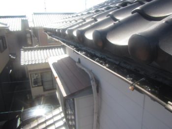雨樋にごみが溜まっています。