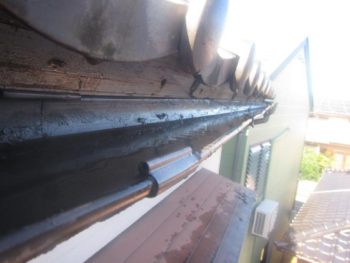 掃除後の写真を見ると樋が著しく劣化していて所々曲がっています。それに加えて中にはゴミが溜まっています。これでは水が流れる訳がありません。