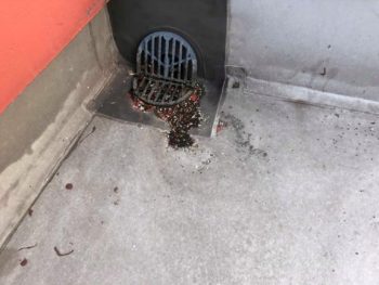 屋上の掃除という事でしたが、排水口にゴミが溜まっていたので取り除きました。排水口が詰まってしまうと雨漏りにつながります。