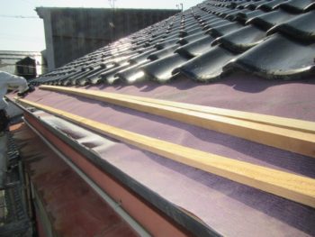瓦が落ちてしまったので、雨が入らないようゴムアスルーフィングを張りました。