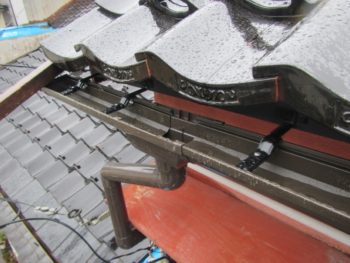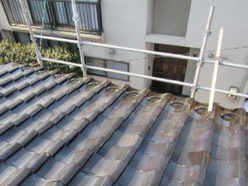 瓦桟を打ち留め、瓦を銅線で締め留めます。(49判瓦)