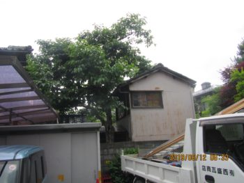 伺うと、木の枝が伸びて屋根にかぶさっていました。剪定されてない木は、