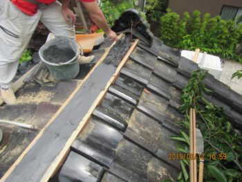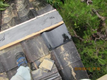 今回も屋根に上がると、瓦が割れていたり、棟瓦がずれていました。