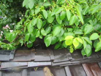 自然災害によって枝が折れ、瓦を割ることが非常に多いです。