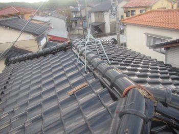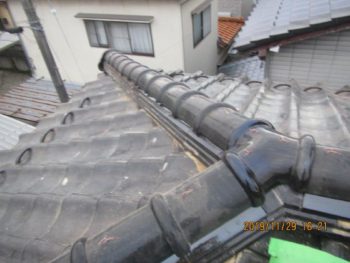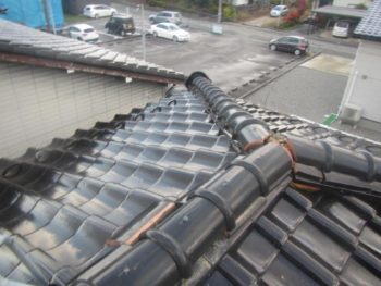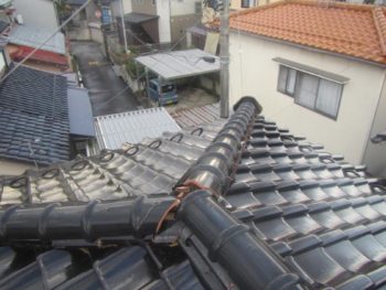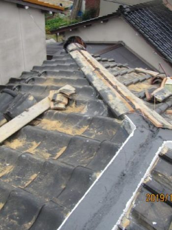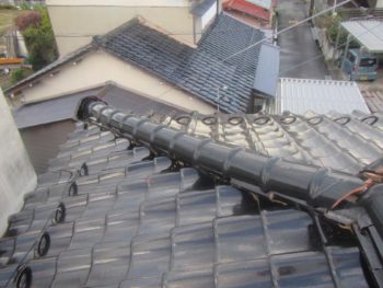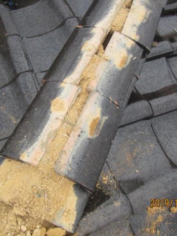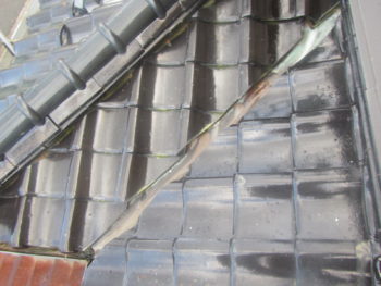 隣の敷地から屋根をみると瓦が落ちている風に見えるのこと