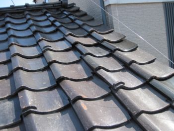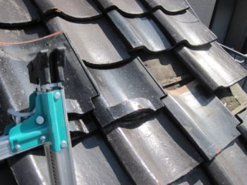 瓦が古いため銅線が切れて、瓦がずれています