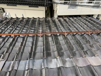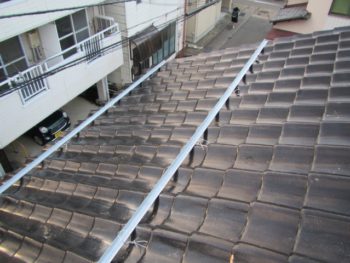 昔からお付き合いのあるN様からアングルが落ちたと電話があり、すぐに駆け付けました。道路には奥様が、通行人や車が来ないかと見ていらっしゃいました。直ぐにアングルを取り外しました。アングルに引っ張られ瓦がずれたので、雨が漏らないように直しました。