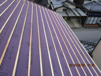 瓦を捲り、瓦桟を取り除きます