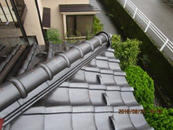 棟土が流れ出た為、棟が蛇行しています