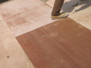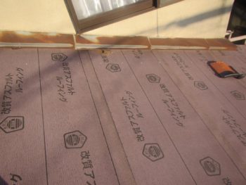 ベニヤ板ゴムアスルーフィングを打ち留めます。