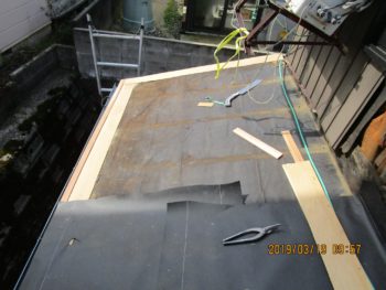 既存の板金を捲ります。一部軒先部分が腐食していました
