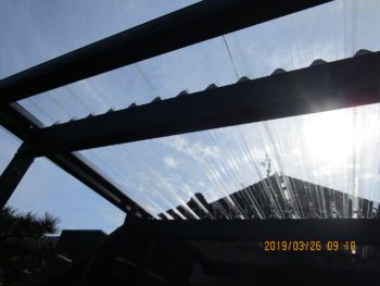 車庫の折板を半分透明なものに替えました