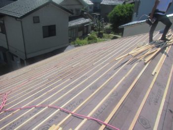 ゴムアスルーフィング、瓦桟を打ち留めます