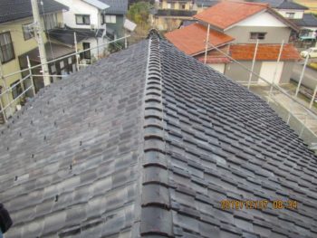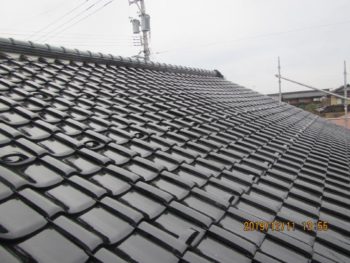 工事後の施工前、施工後の写真を比べて、タルキも直り、瓦もきれいになり