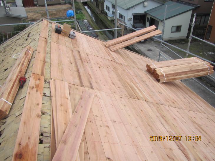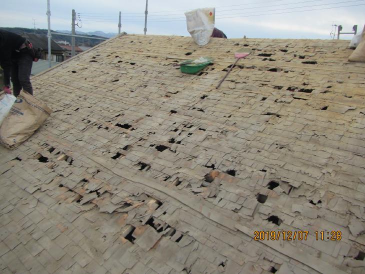 雪が降ったら、重みで被害が広がると言われ、葺き替えすることにしました。