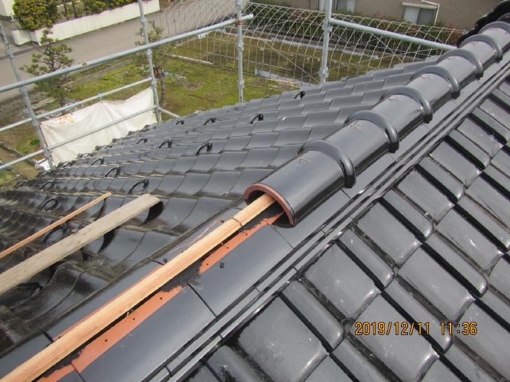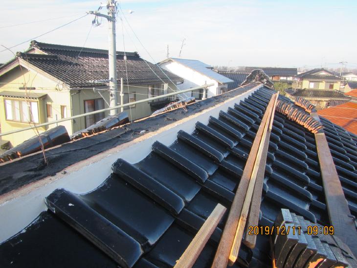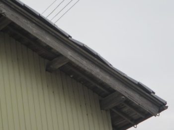 現調したところ、タルキが折れていたのと、袖瓦がずれていました。