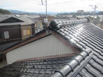 大屋根の瓦が広範囲にわたって、浮いている部分がありましたので、一部修理してもまた他の個所からの雨漏りする可能性があるので、葺き替えをお勧めしました。