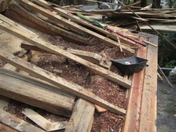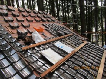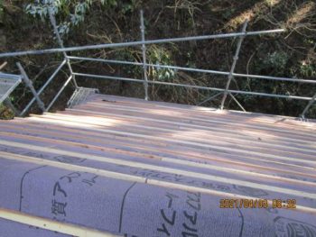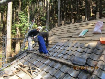 鳥越は雪深いところなので、工事は4月頃でないと出来ないので、応急処置として、シートをかけて雨が入らないようにました。