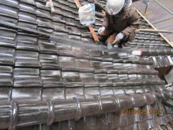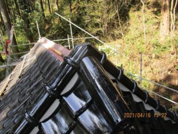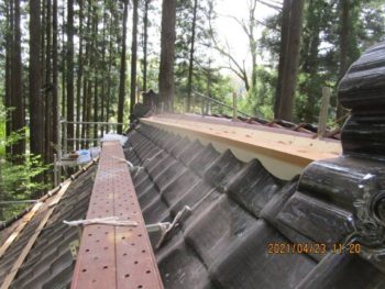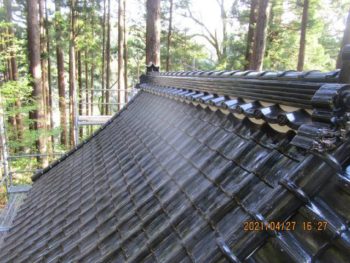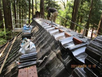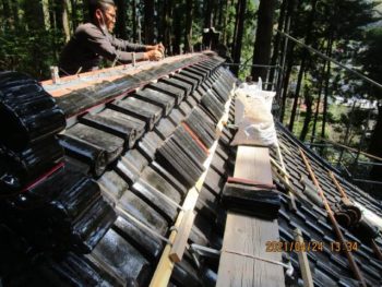 甍瓦を葺き、なんばんを詰み、棟の土台を作ります