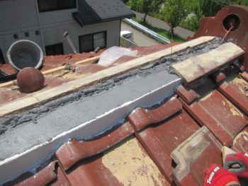 目戸瓦にシックイを塗り、のし瓦を積み重ねていきます。