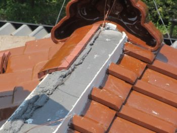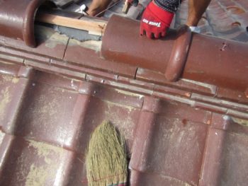 大屋根の棟はまっすぐに積直しました。